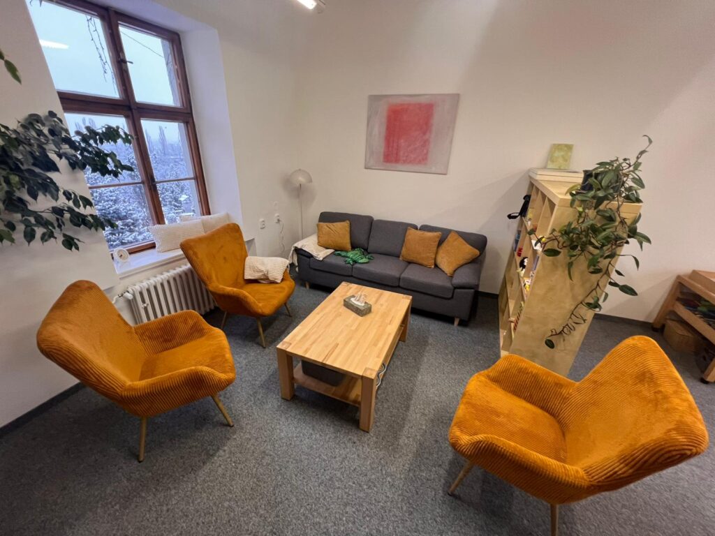 Nahlédněte do našich nových konzultoven. Prostory jsme upravili a vybavili tak, abyste se u nás cítili příjemně, klidně a hlavně bezpečně. Dbali jsme na útulnost, soukromí i atmosféru, ve které se dá otevřeně mluvit. Moderní vybavení nám umožňuje lépe přizpůsobit práci tomu, co potřebujete – ať už se jedná o individuální sezení, párové konzultace nebo terapii s těmi nejmenšími.